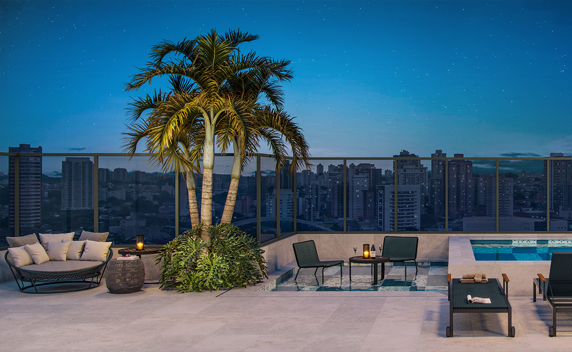 Este espaço é ideal para relaxar e desfrutar de momentos de lazer com uma vista impressionante da cidade, proporcionando uma experiência de luxo e conforto incomparáveis.