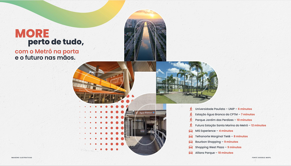 A poucos minutos da Estação Santa Marina e com fácil acesso às avenidas Marquês de São Vicente e Francisco Matarazzo.