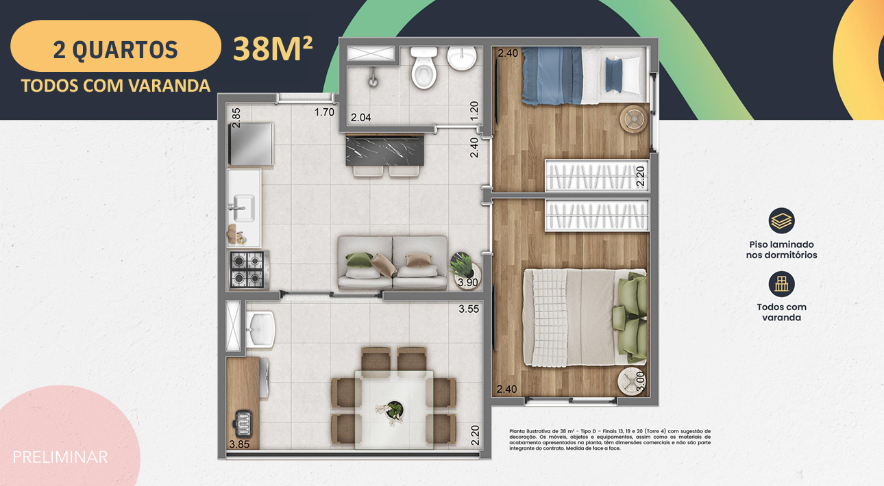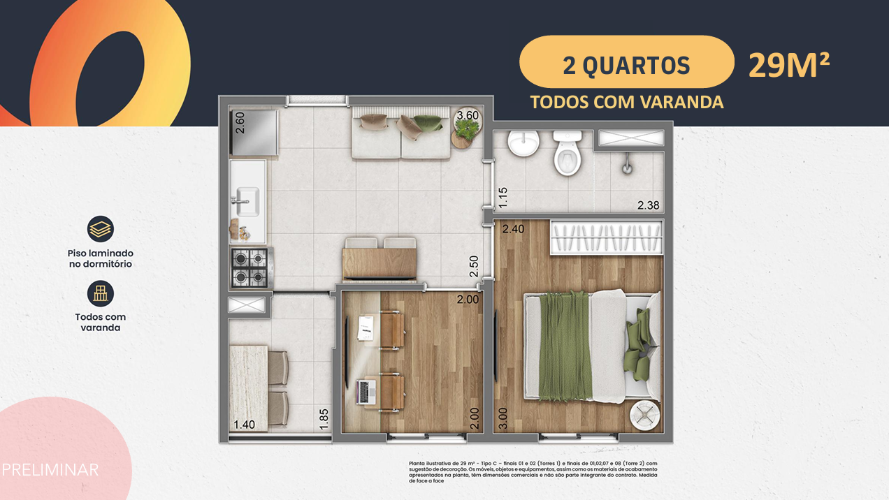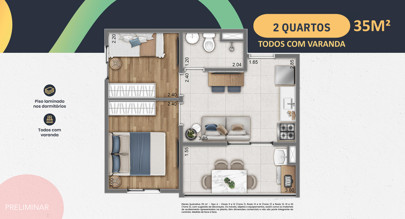 Ideal para casais, jovens profissionais e famílias compactas.