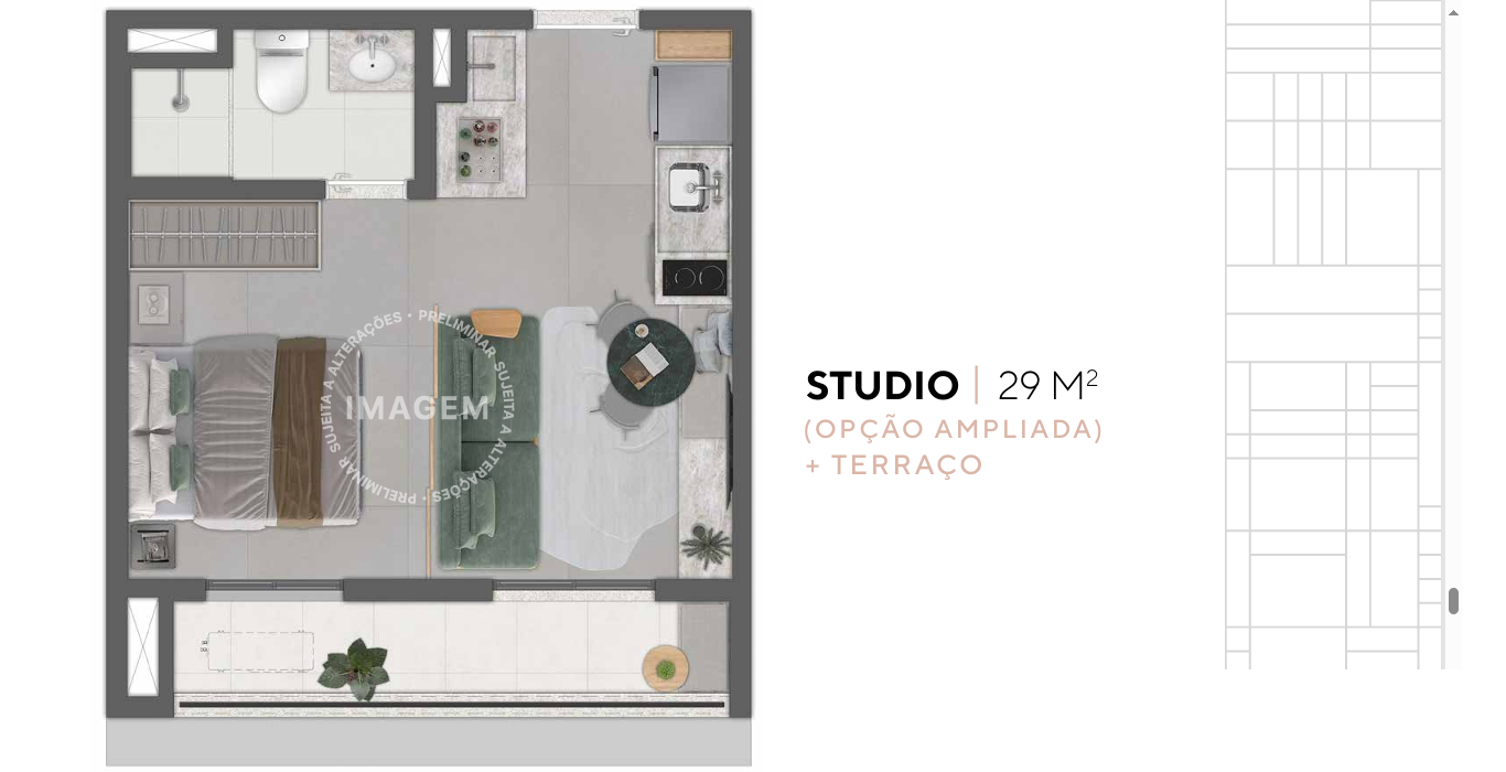 Projetado pelo renomado arquiteto Marcos Gavião, com interiores assinados pela Mandril e paisagismo da Treliz, o JOÁ Pinheiros apresenta uma torre única com 280 unidades. Entre studios e apartamentos de 1 dormitório, cada espaço foi pensado para atender diferentes perfis de moradores, com dimensões que variam entre 24 m² e 29 m². Para completar, o térreo ainda conta com lojas comerciais que agregam ainda mais valor ao empreendimento.