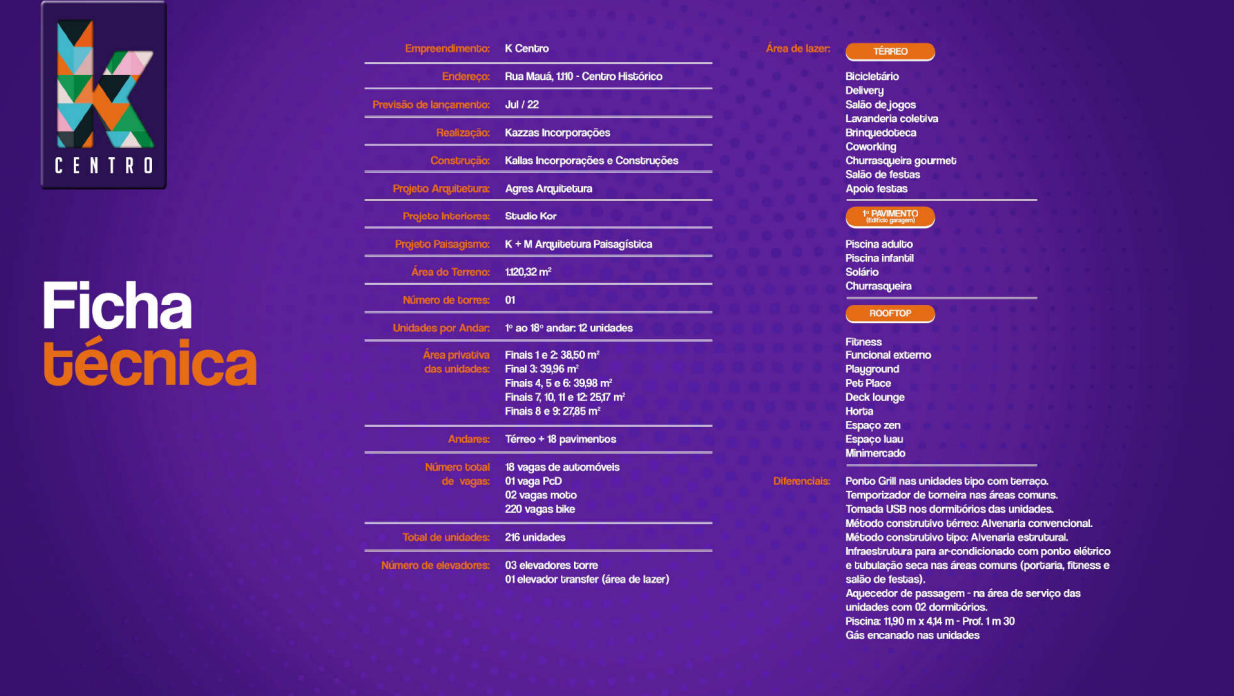 Viver no Condomínio K CENTRO é escolher uma vida de conveniência, lazer e bem-estar. É estar conectado com a história e a cultura de São Paulo, enquanto desfruta de um refúgio moderno e sofisticado. Seja bem-vindo ao seu novo lar, onde cada detalhe foi pensado para proporcionar qualidade de vida e felicidade. Agende sua visita e venha conhecer o ponto de encontro entre o charme do passado e o conforto do futuro.