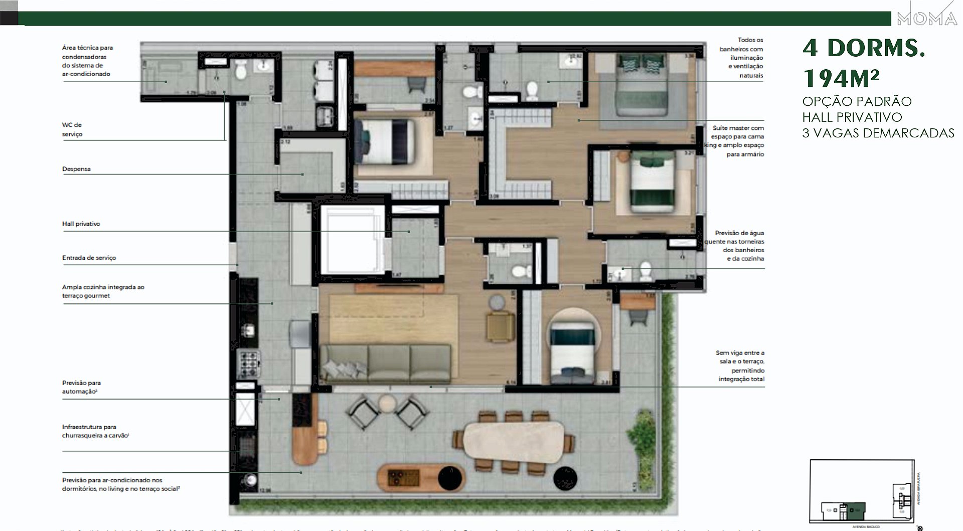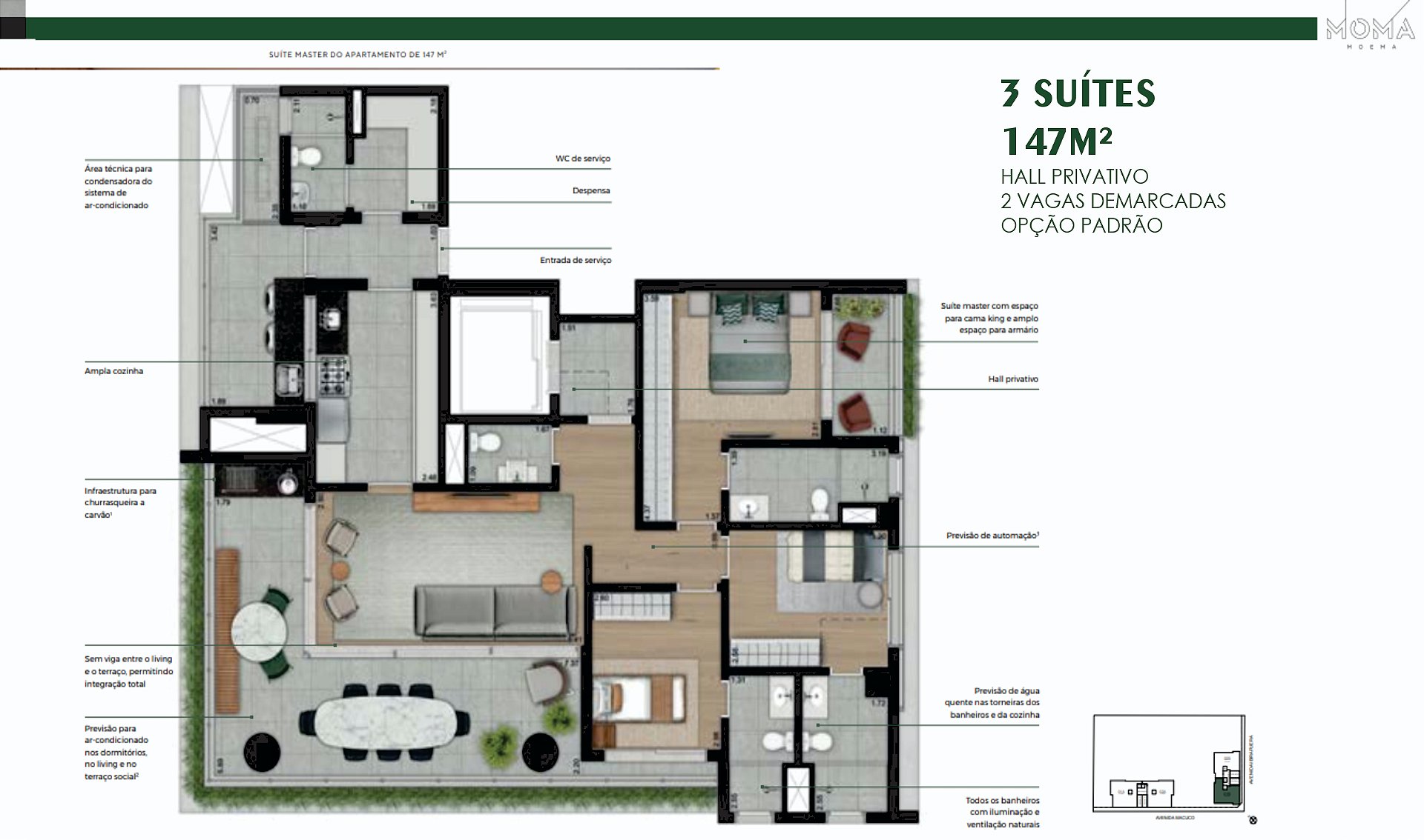 O empreendimento MOMA MOEMA está localizado em um bairro desejado que ocupa a primeira colocação no IDH da cidade e se prepara para receber uma dimensão de modernidade e bem-estar. Assim como Nova York que possui o Central Park, Moema também conta com um grande parque de referência que proporciona novas experiências, eleva a qualidade de vida e cria uma surpreendente conexão entre a natureza e a atmosfera cosmopolita.