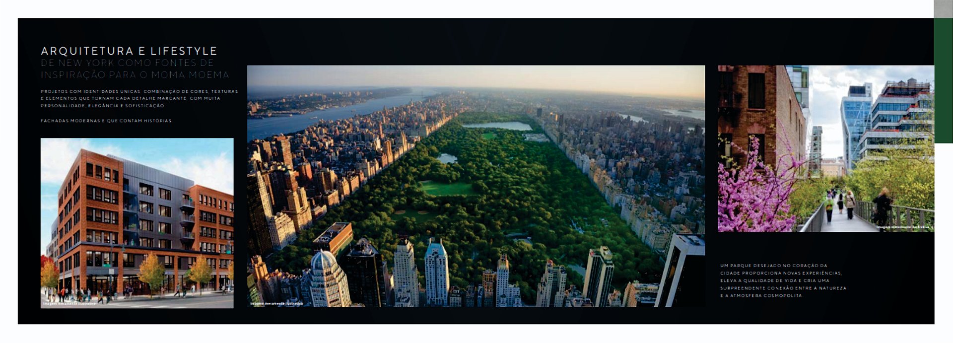 O empreendimento MOMA MOEMA está localizado em um bairro desejado que ocupa a primeira colocação no IDH da cidade e se prepara para receber uma dimensão de modernidade e bem-estar. Assim como Nova York que possui o Central Park, Moema também conta com um grande parque de referência que proporciona novas experiências, eleva a qualidade de vida e cria uma surpreendente conexão entre a natureza e a atmosfera cosmopolita.